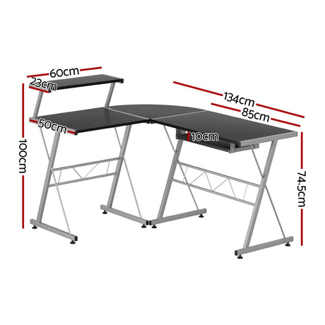 Artiss Computer Desk L-Shape Keyboard Tray Shelf Black