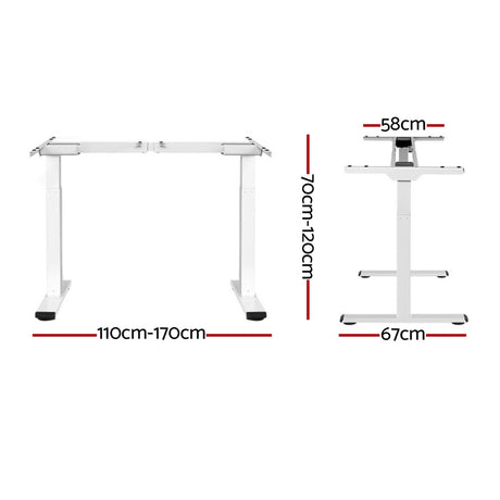 Artiss Electric Standing Desk Frame Only Height Adjustable 70KG Load White