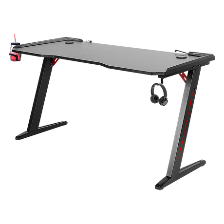LED Gaming Desk Computer Table with Cup Holder Headphone Hook Cable Hole