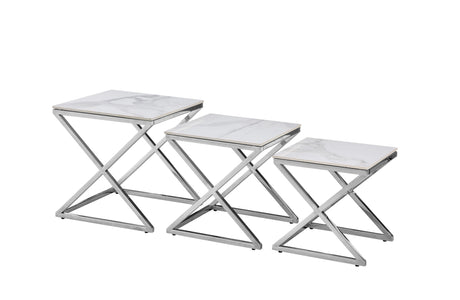 Bella Set of 3 Silver Side Table - White Marble