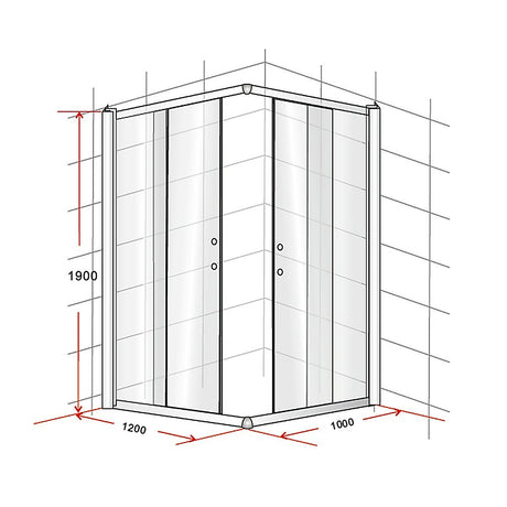 1200 x 1000mm Sliding Door Nano Safety Glass Shower Screen By Della Francesca