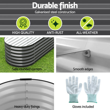 2x Raised Green Fingers Garden Bed 240X80X42cm Oval Planter Box Container Galvanised