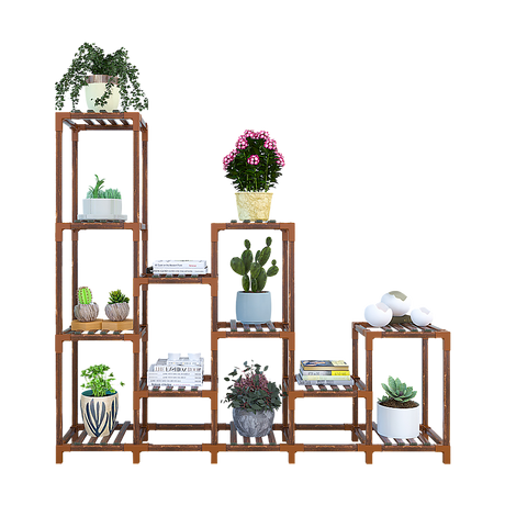 Indoor Outdoor Garden Plant Stand Planter Flower Pot Shelf Wooden Shelving - 12 Shelves