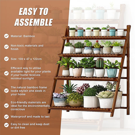 Plant Stand Outdoor Indoor Garden Wood Bamboo Shelf Folding 100CM Length
