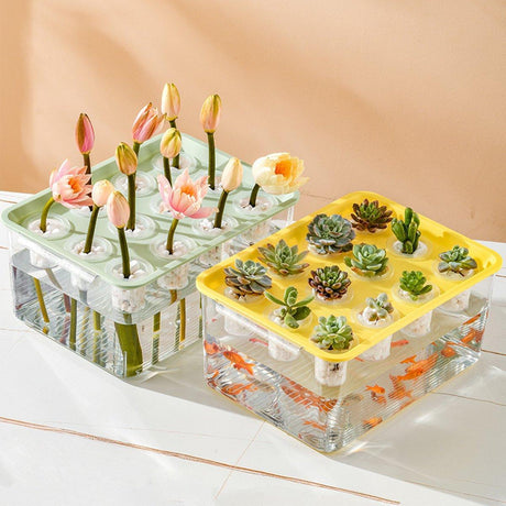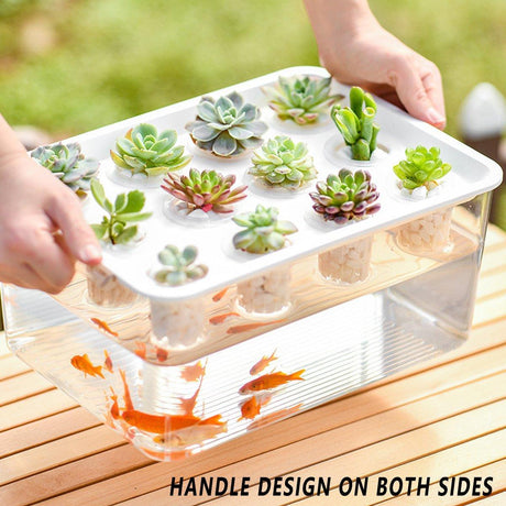 Transparent Rectangular Aquarium 12Hole Lid Portable Hydroponic Plant Fish Tank - Green