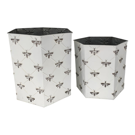 Set 2 Assorted Monochrome Flower Planters w Hole + Plug 17cm