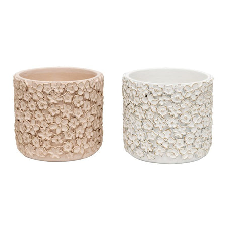 Set 2 Asst Flower Embossed Planters w Hole + Plug 18cm