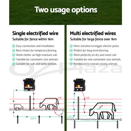 Giantz Fence Energiser 5KM Solar Powered Electric 2KM Poly Wire