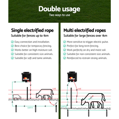 Giantz Fence Energiser 3KM Solar Powered Electric 500M Poly Rope