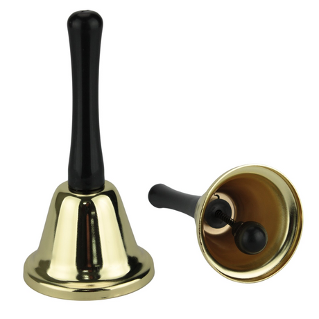 SANTA BELL Jingle Claus Wooden Handle Bells Rattles Christmas Xmas - Gold
