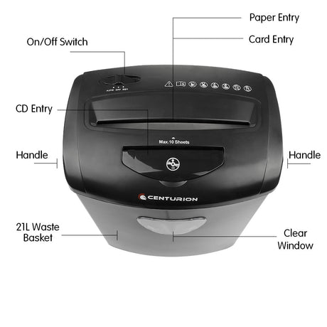 Centurion 21L Cross-Cut Office Shredder 10-Sheet Paper, CD & Credit Card Security