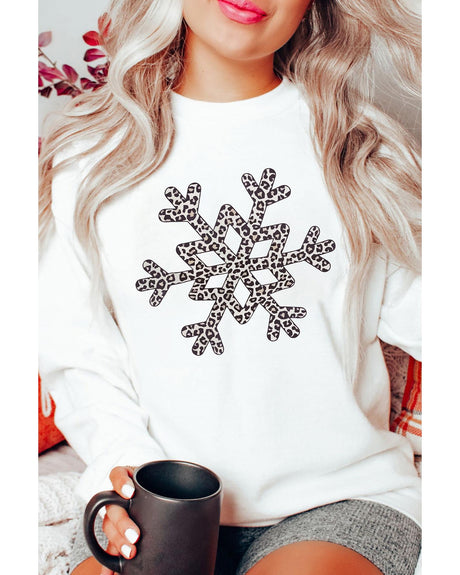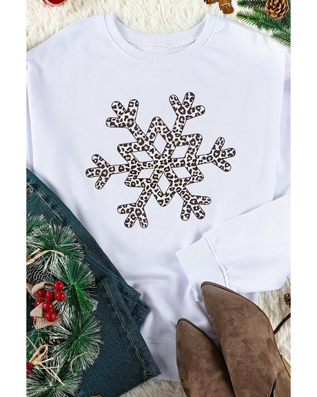Azura Exchange Leopard Print Snowflake Crew Neck Sweatshirt - S