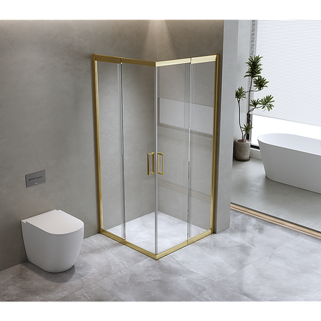 Adjustable 1100x1100mm Double Sliding Door Glass Shower Screen in Gold