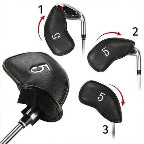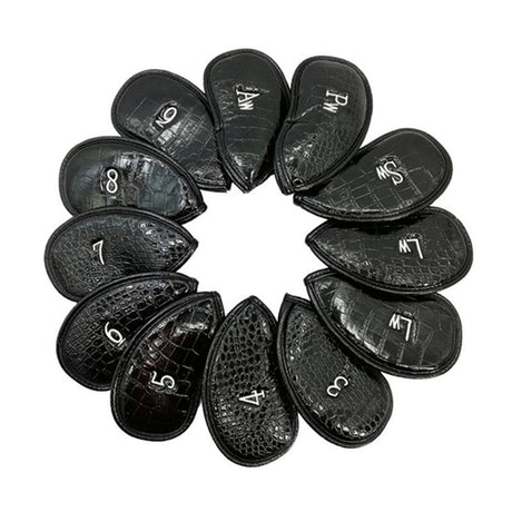 Versatile 12-piece Golf Club Cap Set in Black Pu Leather with Litchi Texture