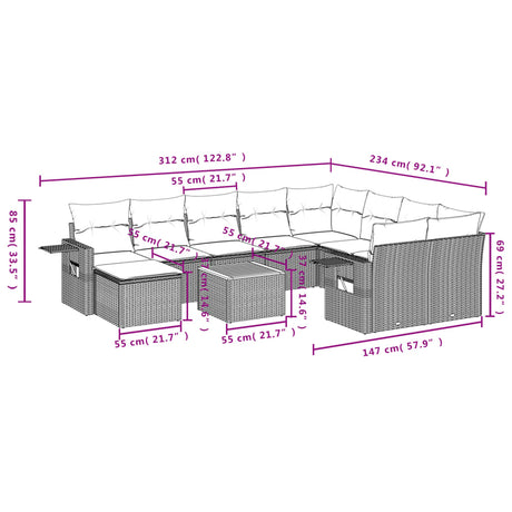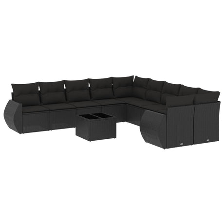 11 Piece Garden Sofa Set with Cushions Black Poly Rattan