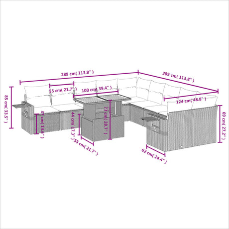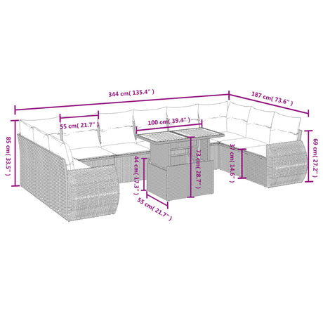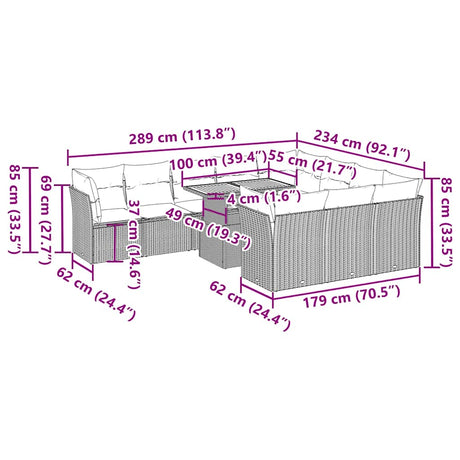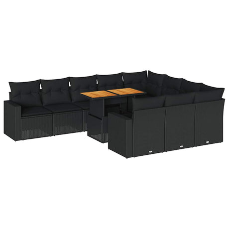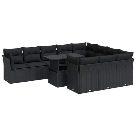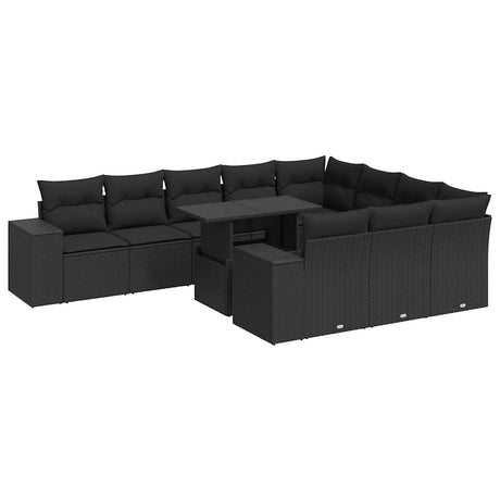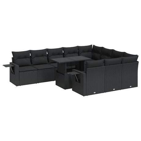 11 Piece Garden Sofa Set with Cushions Black Poly Rattan