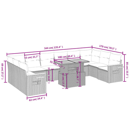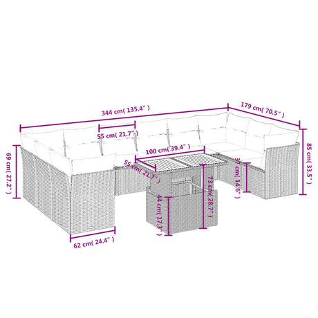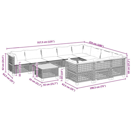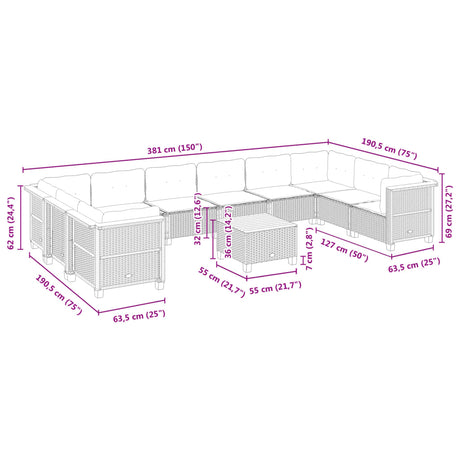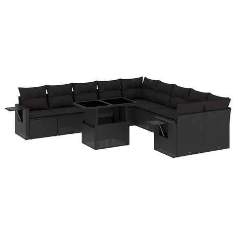 11 Piece Garden Sofa Set with Cushions Black Poly Rattan