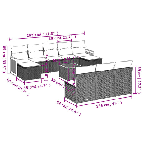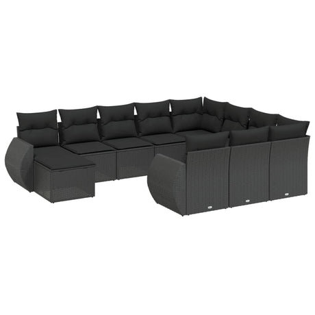 11 Piece Garden Sofa Set with Cushions Black Poly Rattan
