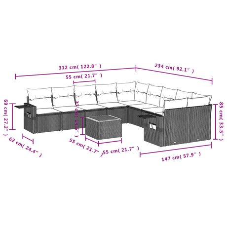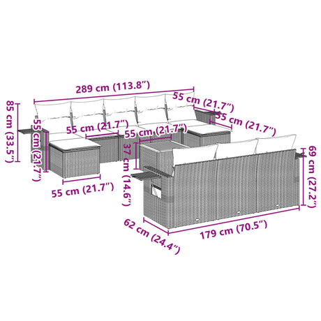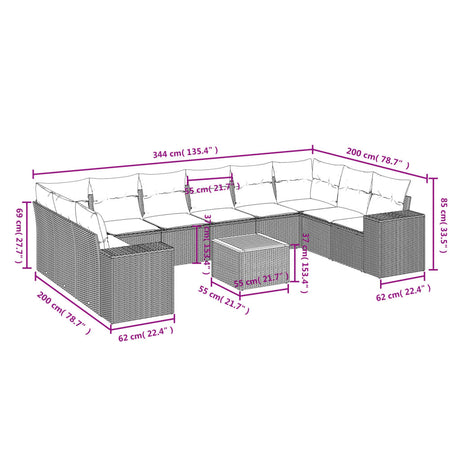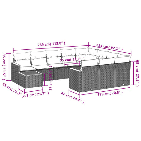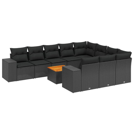 11 Piece Garden Sofa Set with Cushions Black Poly Rattan