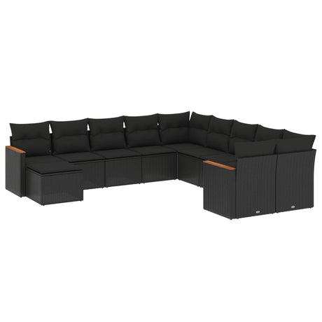 11 Piece Garden Sofa Set with Cushions Black Poly Rattan
