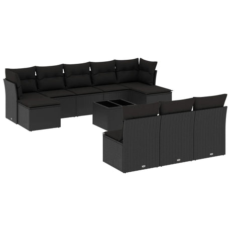 11 Piece Garden Sofa Set with Cushions Black Poly Rattan