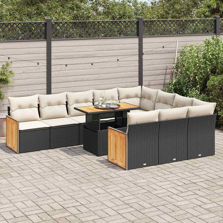 11 Piece Garden Sofa Set with Cushions Black Poly Rattan Acacia