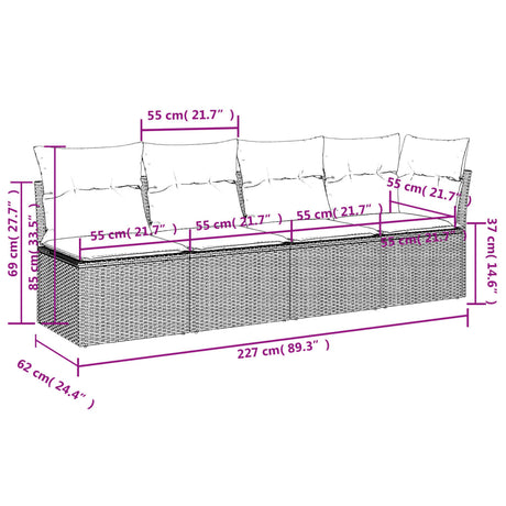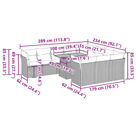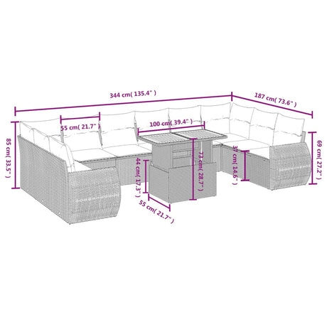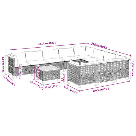 11 Piece Garden Sofa Set with Cushions Grey Poly Rattan