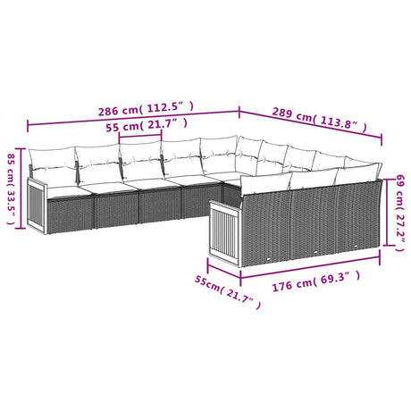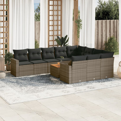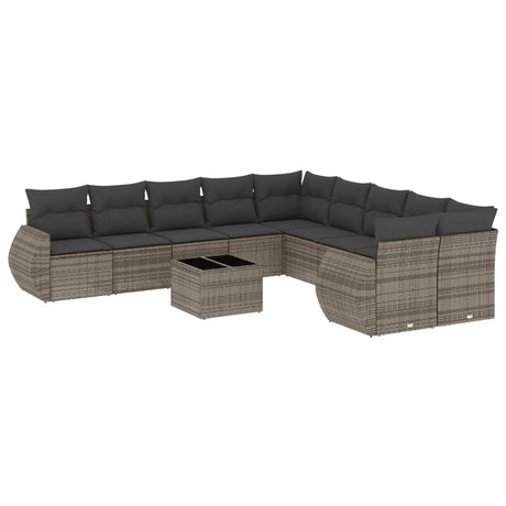 11 Piece Garden Sofa Set with Cushions Grey Poly Rattan
