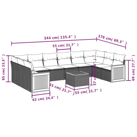 11 Piece Garden Sofa Set with Cushions Grey Poly Rattan