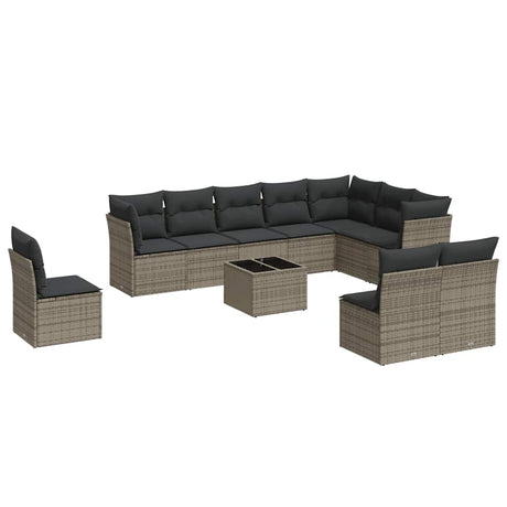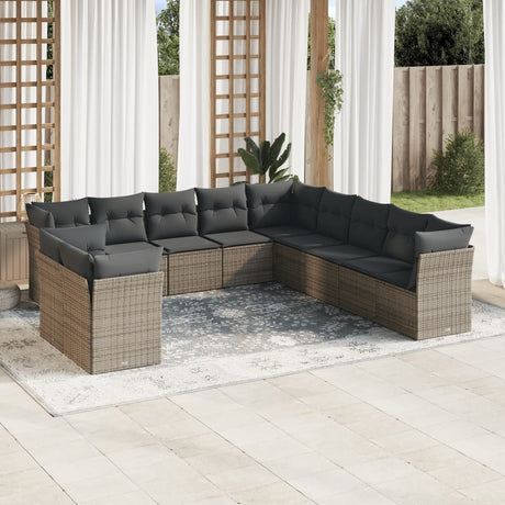 11 Piece Garden Sofa Set with Cushions Grey Poly Rattan