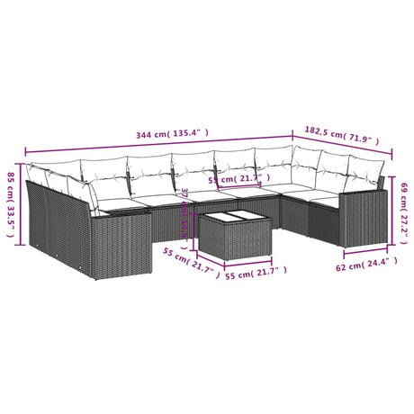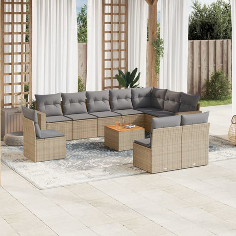 11 Piece Garden Sofa Set with Cushions Mix Beige Poly Rattan