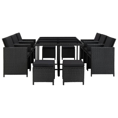11 Piece Outdoor Dining Set with Cushions Poly Rattan Black