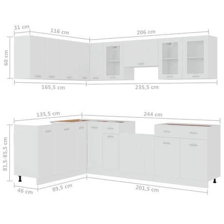 11 Piece Kitchen Cabinet Set Lyon White Engineered Wood