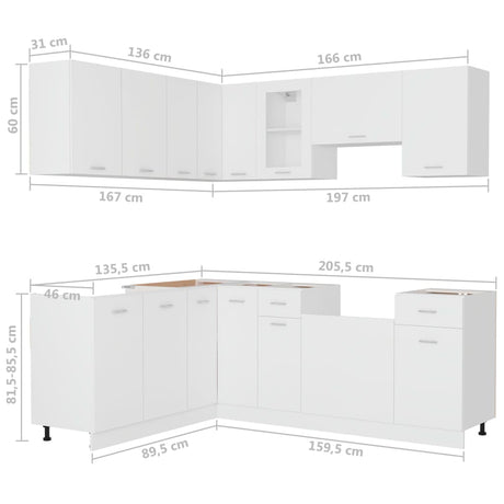 11 Piece Kitchen Cabinet Set Lucca White Engineered Wood