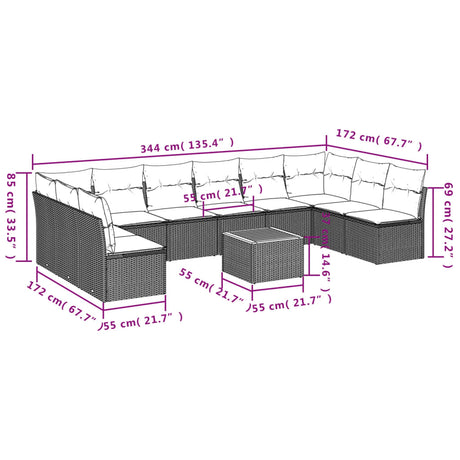 11 Piece Garden Sofa Set with Cushions Mix Beige Poly Rattan