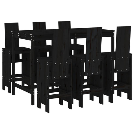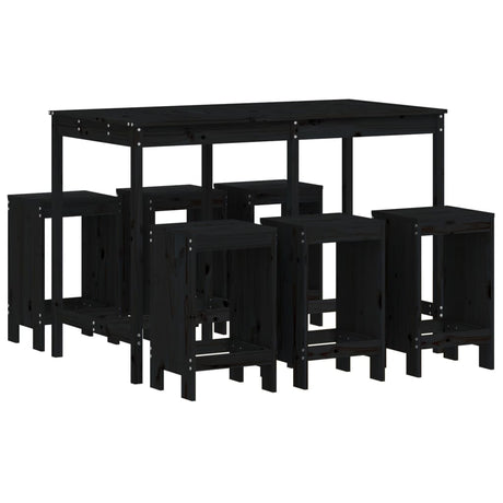 7 Piece Garden Bar Set Black Solid Wood Pine