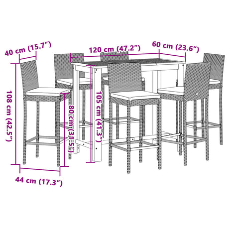 7 Piece Garden Bar Set Grey Solid Wood Acacia and Poly Rattan