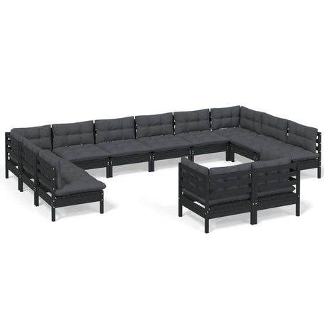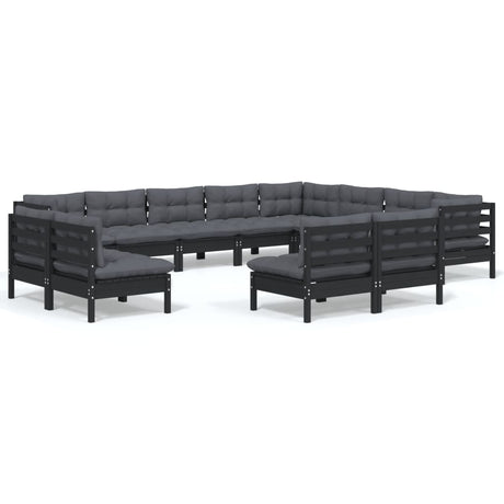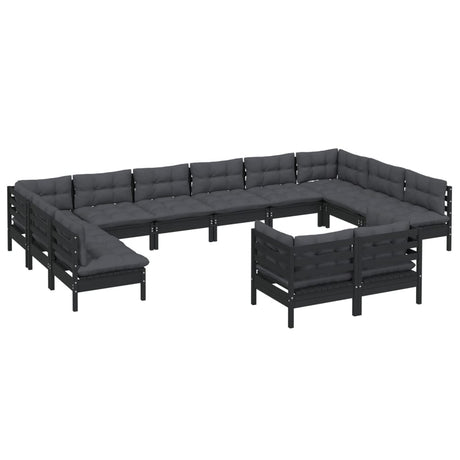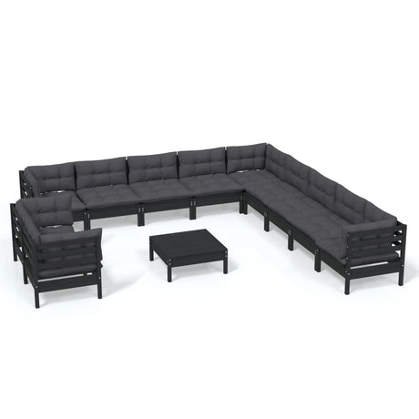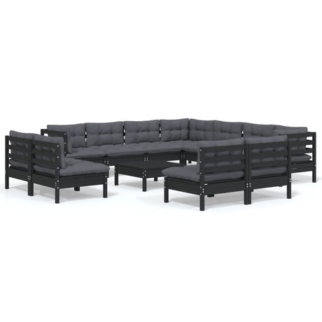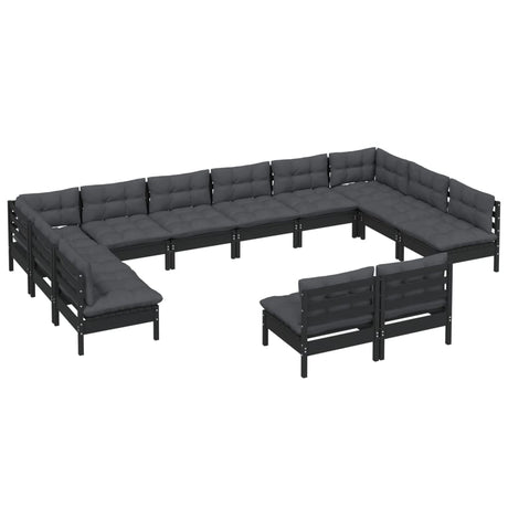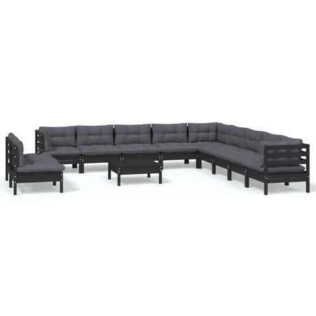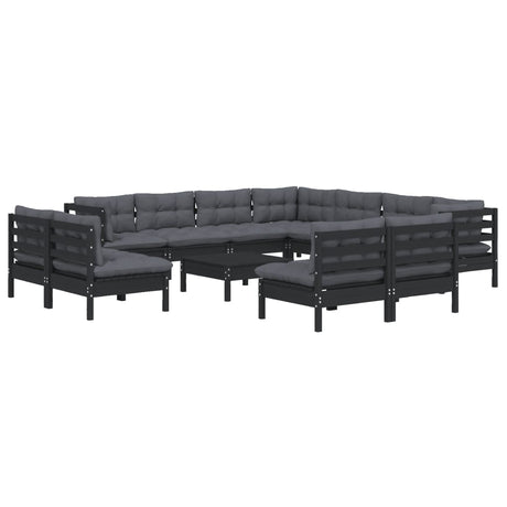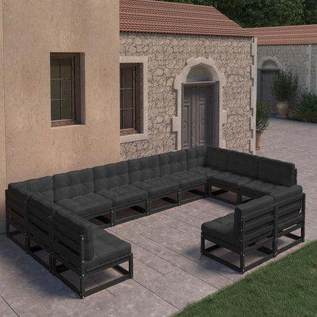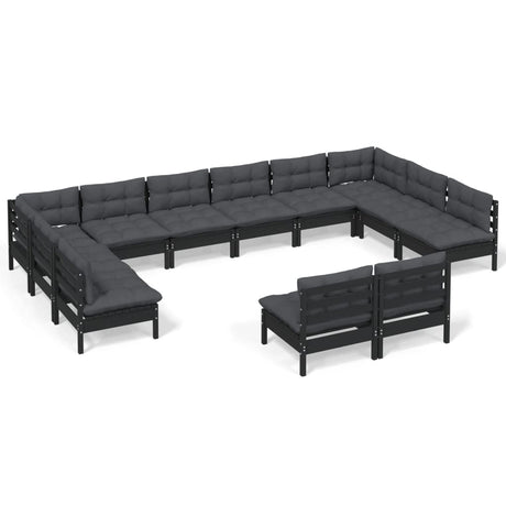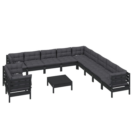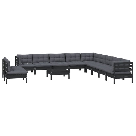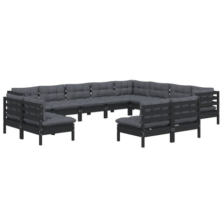 12 Piece Garden Lounge Set with Cushions Black Solid Pinewood