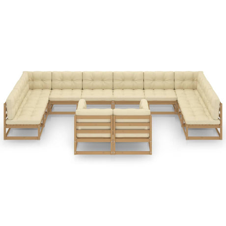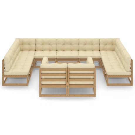 12 Piece Garden Lounge Set&Cushions Honey Brown Solid Pinewood