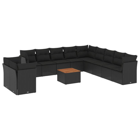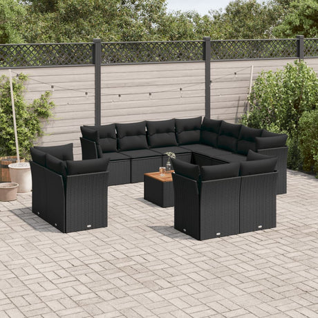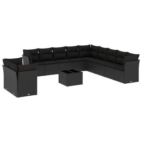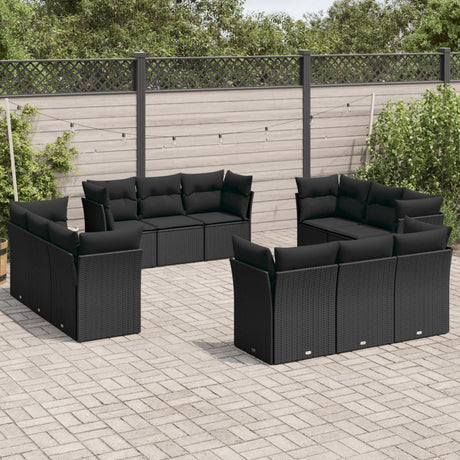 12 Piece Garden Sofa Set with Cushions Black Poly Rattan