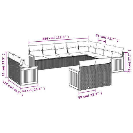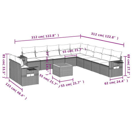 12 Piece Garden Sofa Set with Cushions Grey Poly Rattan
