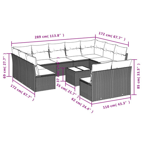 12 Piece Garden Sofa Set with Cushions Mix Beige Poly Rattan