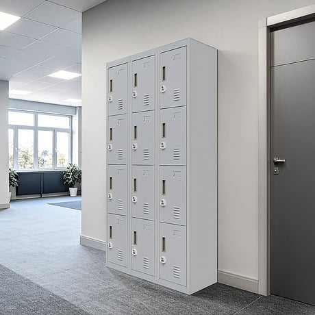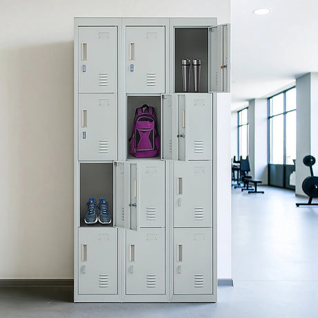 12-Door Locker for Office Gym Shed School Home Storage - Standard Lock with Keys