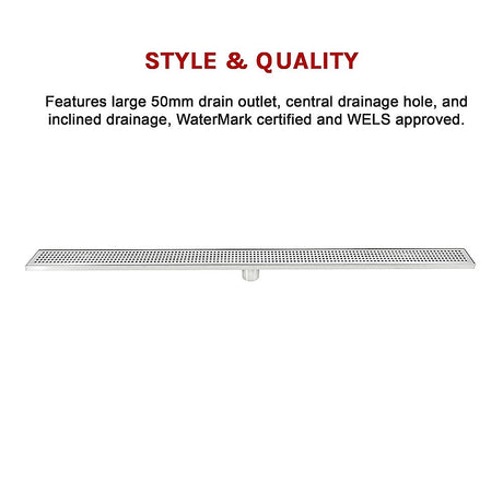 1200mm Bathroom Shower Stainless Steel Grate Drain w/Centre outlet Floor Waste Square Pattern
