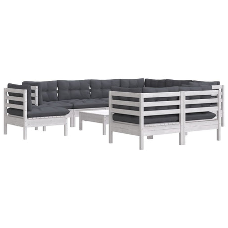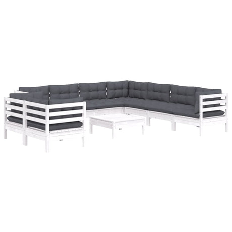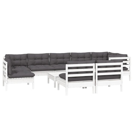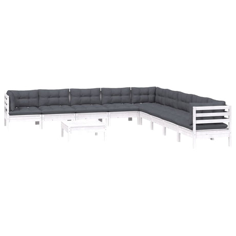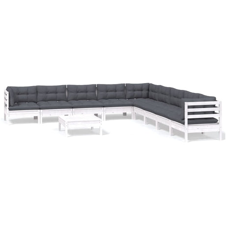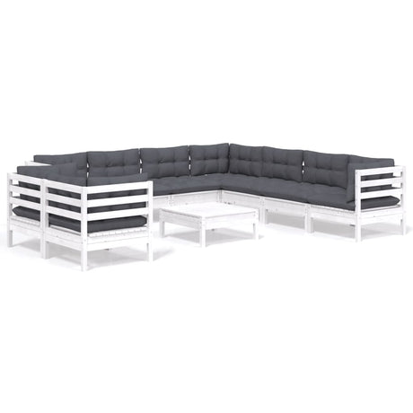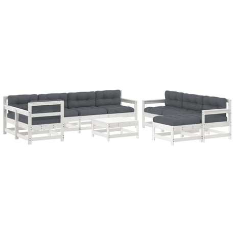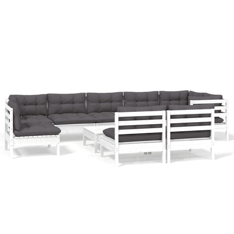 10 Piece Garden Lounge Set with Cushions White Solid Pinewood