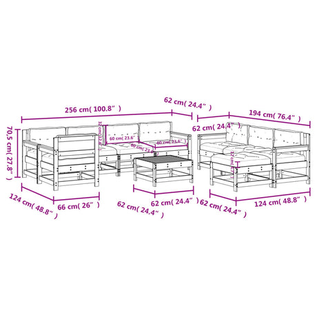 10 Piece Garden Lounge Set with Grey Cushions Pinewood