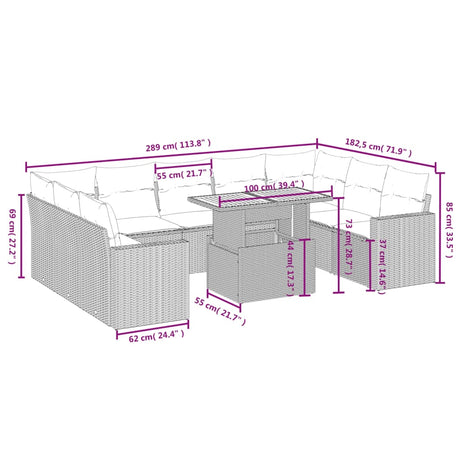 10 Piece Garden Sofa Set with Cushions Beige Poly Rattan