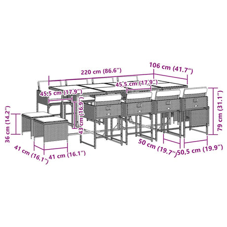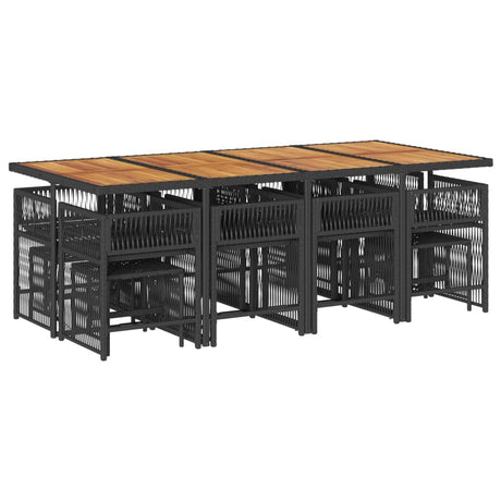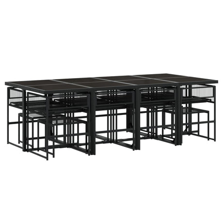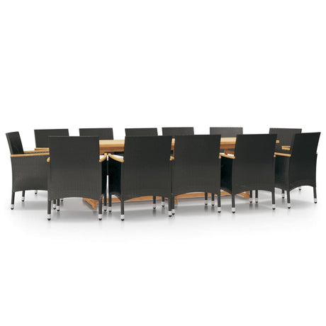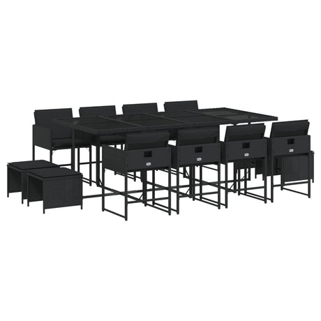 13 Piece Garden Dining Set with Cushions Black Poly Rattan