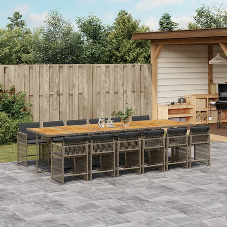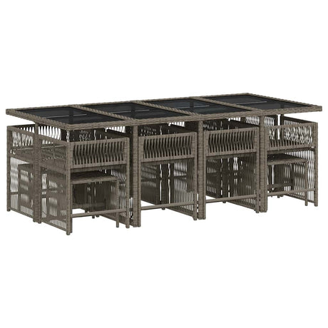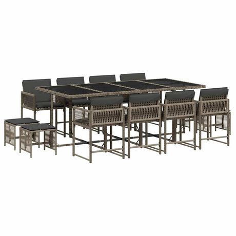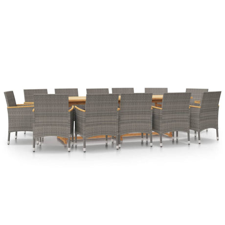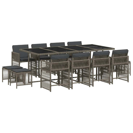 13 Piece Garden Dining Set with Cushions Grey Poly Rattan