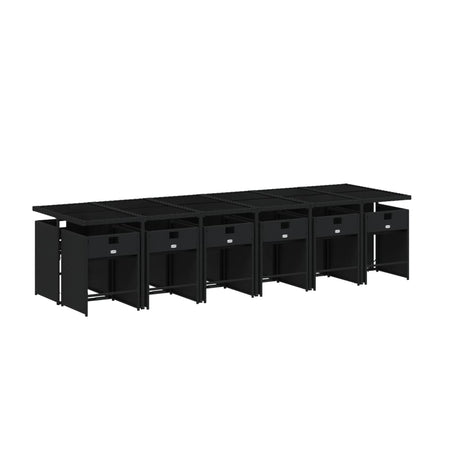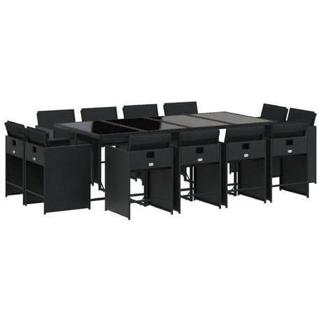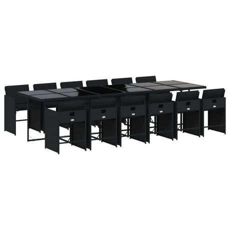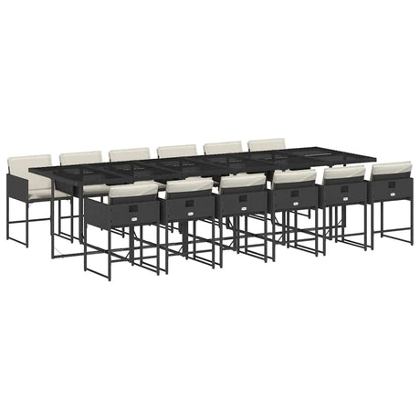 13 Piece Garden Dining Set with Cushions Black Poly Rattan